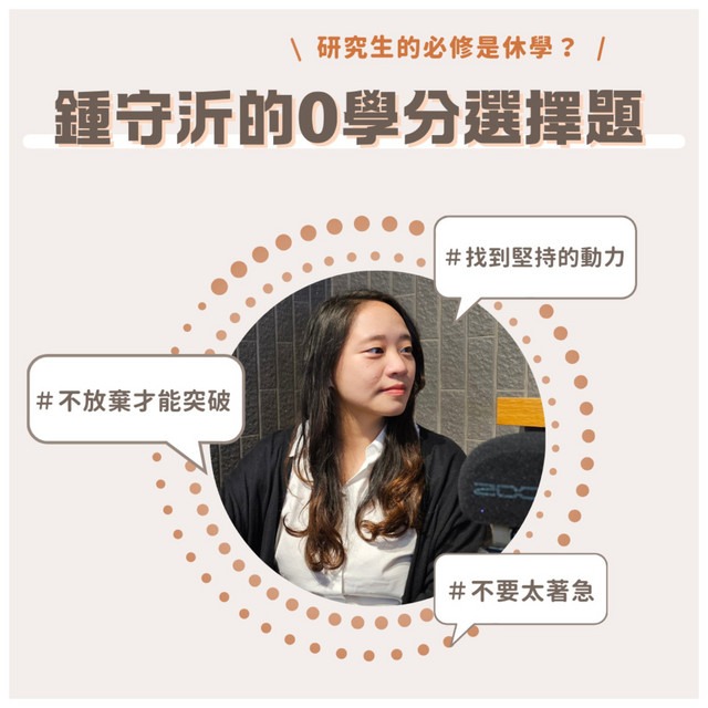 讀研究所是為了什麼?無論是興趣的延伸或是讓未來的自己更有資本,什麼樣的動機,能讓身為「研究生」的自己,努力的堅持下去?師大大傳所109級畢業所友鍾守沂,在就讀大傳所期間,也和許多人一樣,難免對未來迷茫,擔心自己明明比別人多努力了這段路,最後卻沒辦法達到自己定義的「成功」。
